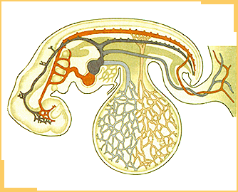 - Atrio - Aorta dorsal - Vena cardinal posterior - Arteria umbilical - Vena umbilical - Arteria vitelina - Vena vitelina - Seno venoso - Ventrículo - Vena cardinal comun - Arcos aorticos - Arteria carotida interna - Vena cardinal anterior - Aorta ventral