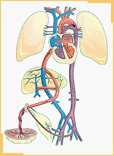 - Pulmones afuncionales - Circulación pulmonar, 50% saturación 02 - 5ª mezcla de sangre - Atrio izquierdo - Ventrículo izquierdo - Ventrículo derecho - Cava inferior suprahepática, 65% saturación 02 - Esfínter venoso - Aorta descendente y ramas, 55% saturación 02 - Vejiga - Placenta - Vena umbilical y ramas, 80% saturación 02 - 1ra. mezcla de sangre - Hígado - 2ª mezcla de sangre - 3ª mezcla de sangre - Cava superior y ramas, 30% saturación de 02 - Atrio derecho - 4ª mezcla de sangre - Cava inferior infrahepática, 30% saturación de 02 - Arco aórtico y ramas, 65% saturación de 02
