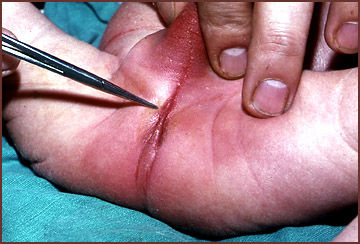 Defecto de desarrollo de la porción distal del intestino posterior, que queda cerrado, sin comunicación con la región perineal. La imagen clínica muestra la región perineal con el defecto de comunicación anorectal.