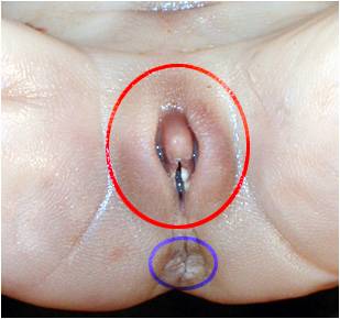 círculo azul señala la región anal con