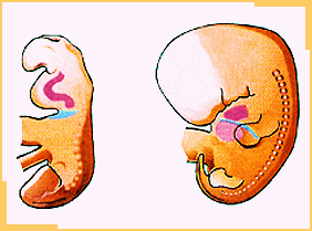 Embriones de cuatro y de seis semanas, que muestra los cambios de posición que experimenta el diafragma durante el desarrollo.
