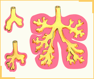 - Traquea - Mesodermo esplacnico - Bronquio derecho - Bronquio izquierdo - Bronquio lobular superior derecho - Bronquio lobular inferior derecho - Bronquio lobular medio - Bronquio lobular superior izquierdo - Bronquio lobular inferior izquierdo - Lóbulo pulmonar superior derecho - Lóbulo pulmonar inferior derecho - Lóbulo pulmonar medio - Lóbulo pulmonar superior izquierdo - Lóbulo pulmonar inferior izquierdo