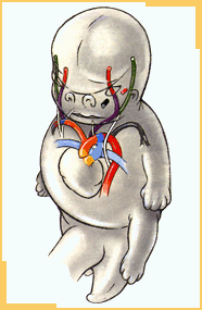 Embrión de ocho semanas, que muestra el desarrollo de los arcos aórticos y de los vasos pulmonares.