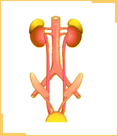 - Vejiga - Conducto mesonéfrico - Uréter - Gónada - Pelvis renal - Arteria ilíaca común - Riñón - Glándula suprarrenal - Aorta - Arteria suprarrenal - Arteria renal