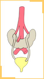 - Arteria aorta - Arteria renal - Pelvis Renal - Arteria mesentérica inferior - Uréter - Arteria iliaca común - Uretra - Vejiga - Riñón en herradura