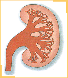 - Uréter - Pelvis renal - Cáliz mayor - Cáliz menor - Túbulos colectores rectos - Túbulos colectores arqueados