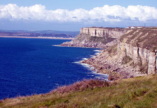 1. Acantilado estabilizado. Su base está protegida del oleaje por depósitos detritícos que rara vez son alcanzados por el agua.