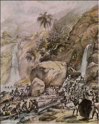Faenas de esclavos en lavaderos de oro explotados durante el siglo XVI.