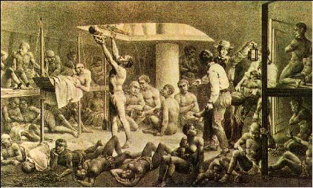 ![]() Barbados, 1729.- Las tentativas esporádicas que se han hecho para mejorar las condiciones de la travesía de los esclavos desde el África y limitar la cantidad de negros en cada viaje, han terminado en un rotundo fracaso; el afán de lucro de las compañías resultó más fuerte. Los esclavos vienen hacinados en los barcos, expuestos a contraer enfermedades fatales, de manera que los que se encargan de inspeccionarlos por la mañana deben desencadenar los cadáveres para separarlos de los cuerpos de sus compañeros de infortunio. La mortandad es elevada; se estima en alrededor de un 20 por ciento. De ahí el nombre de "tumbeiros" (ataúdes) con el que se designa a los barcos negreros. |